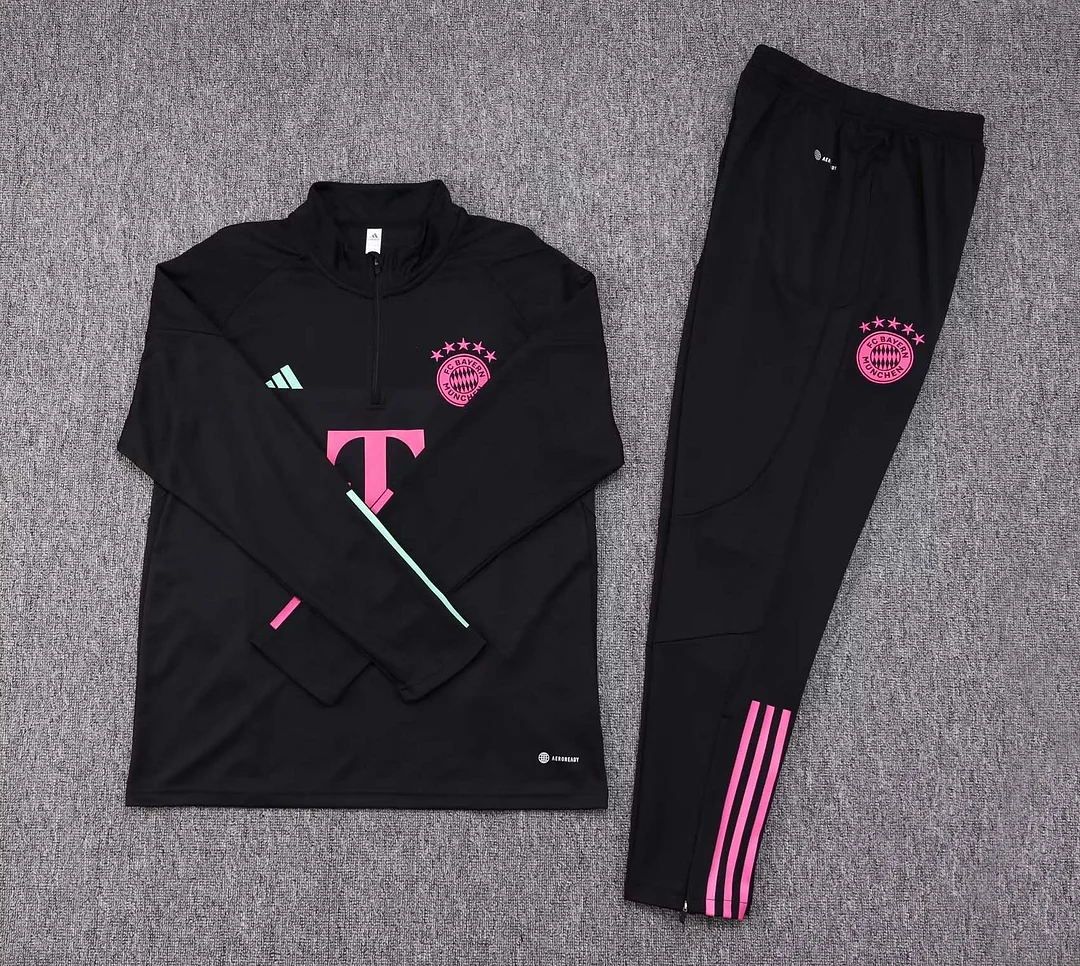2023/2024 Bayern Munich Half-Pull Training Suit Black Football Shirt 1:1 Thai Quality Set