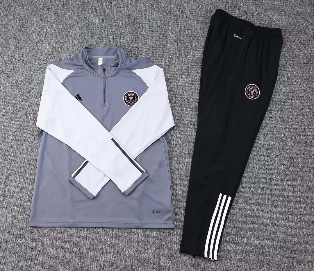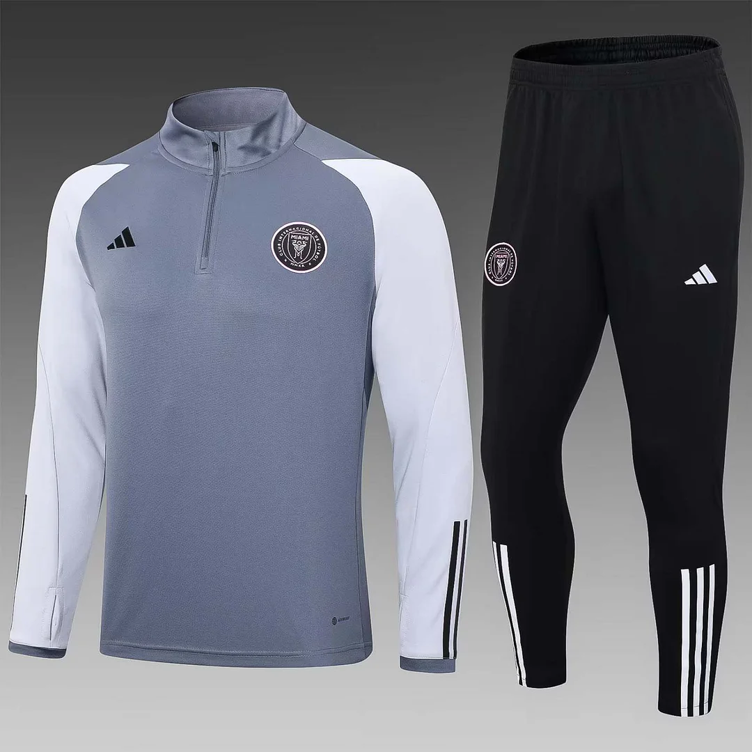 2023/2024 Inter Miami Half-Pull Training Suit gray Football Shirt 1:1 Thai Quality Set