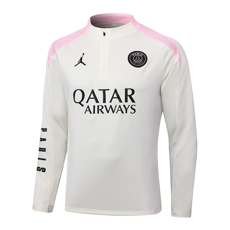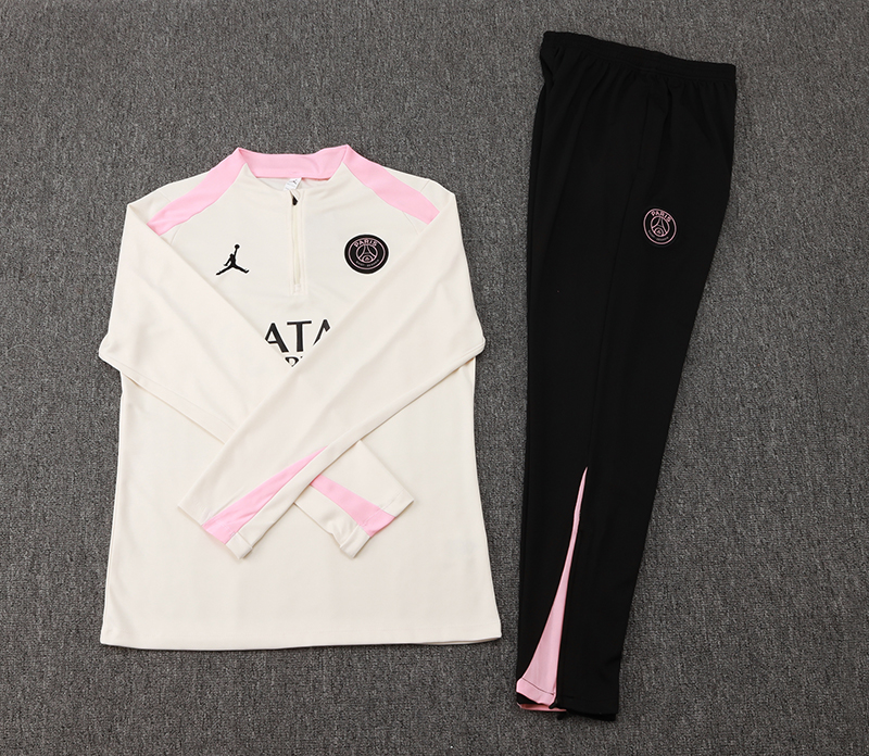 2024/2025 Psg Paris Saint-Germain Half-Pull Training Suit Beige with pink Set