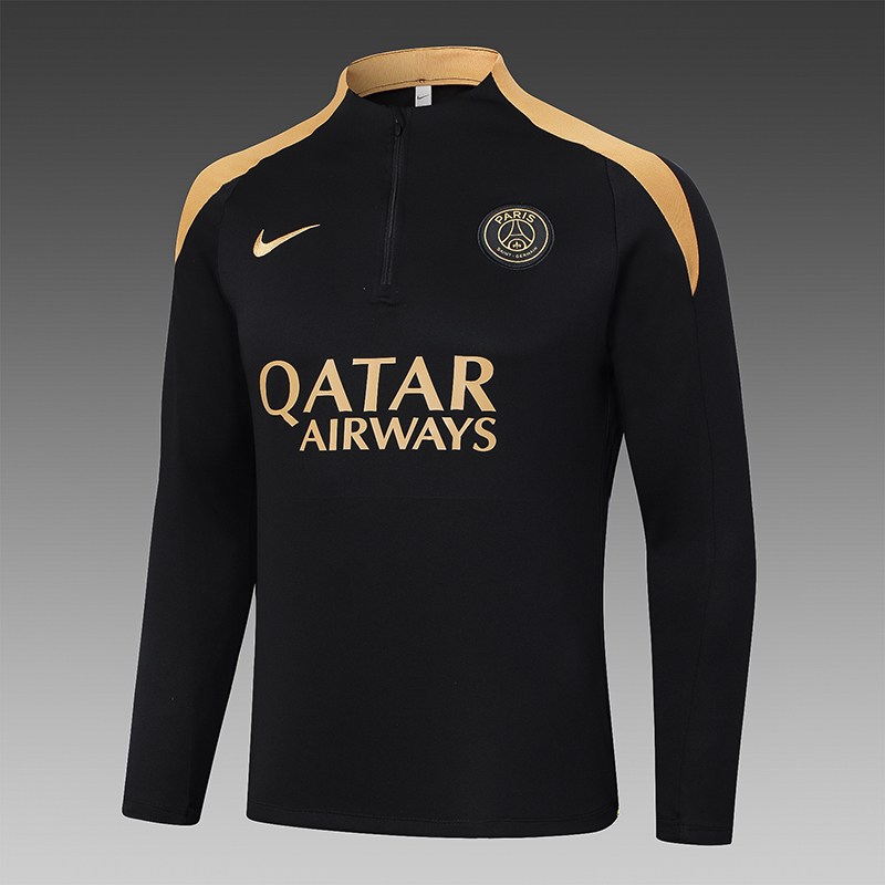 2024/2025 Psg Paris Saint-Germain Half-Pull Training Suit Black-Yellow Collar Set