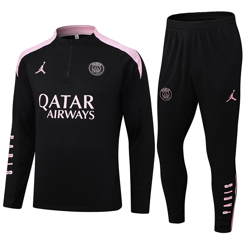 2024/2025 Psg Paris Saint-Germain Half-Pull Training Suit Black with pink Set