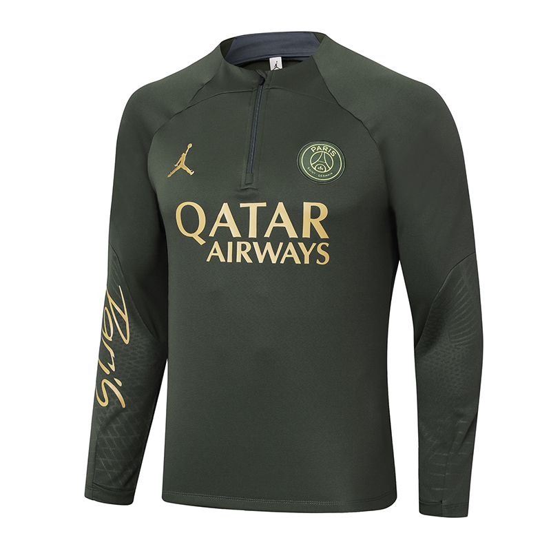 2023-2024 Psg Paris Saint-Germain Half-Pull Training Suit Army Green Set