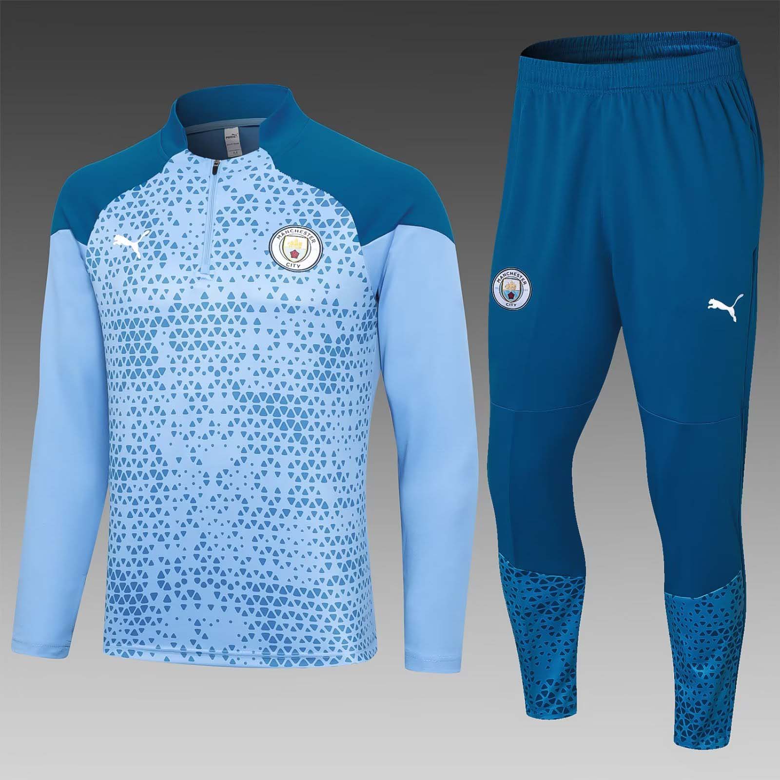 2023/2024 Manchester City Half-Pull Training Suit blue Football Shirt 1:1 Thai Quality Set