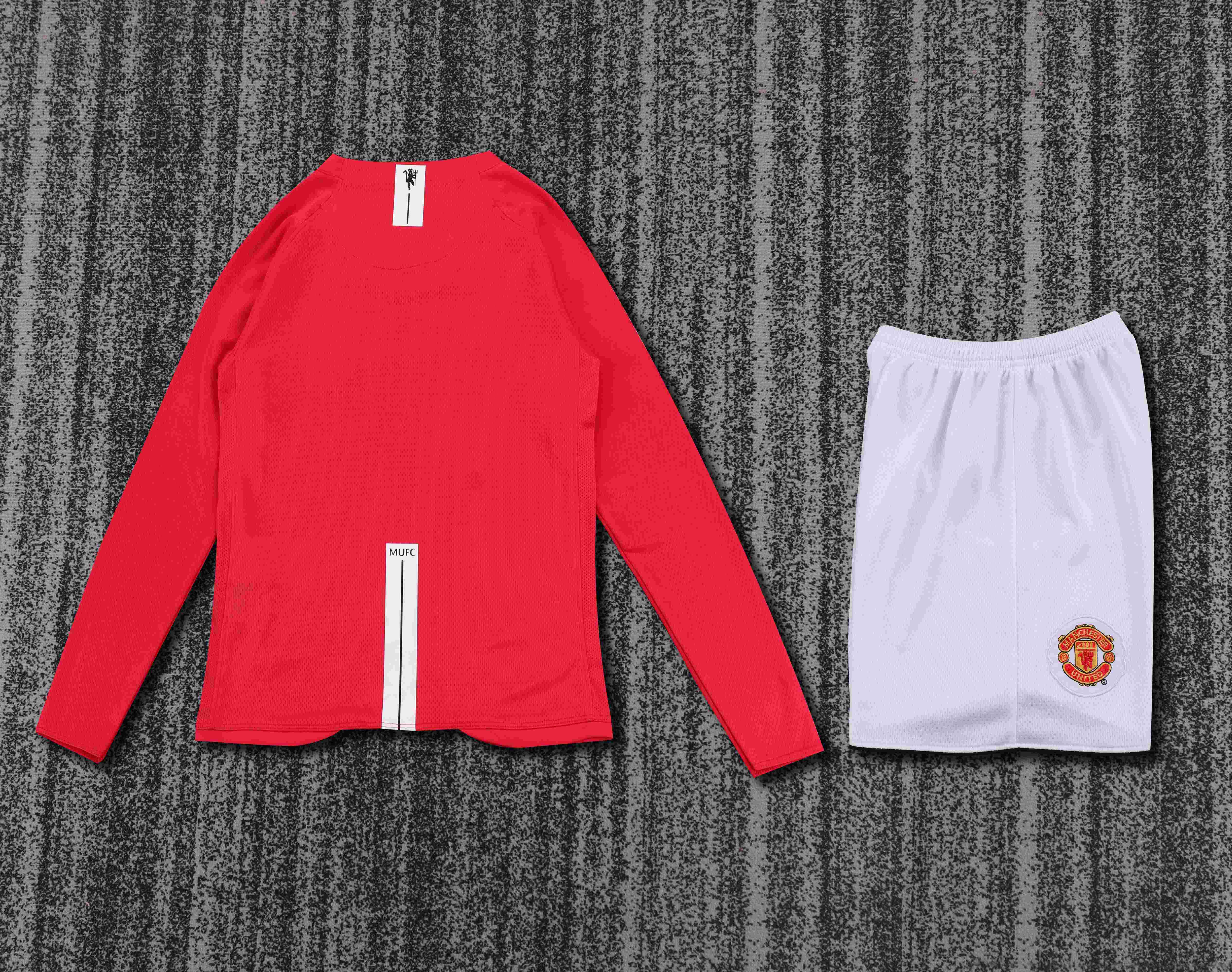 2007/2008 Retro Long Sleeve Manchester United Home Champions League Edition Football Shirt 1:1 Thai Quality Kids Size