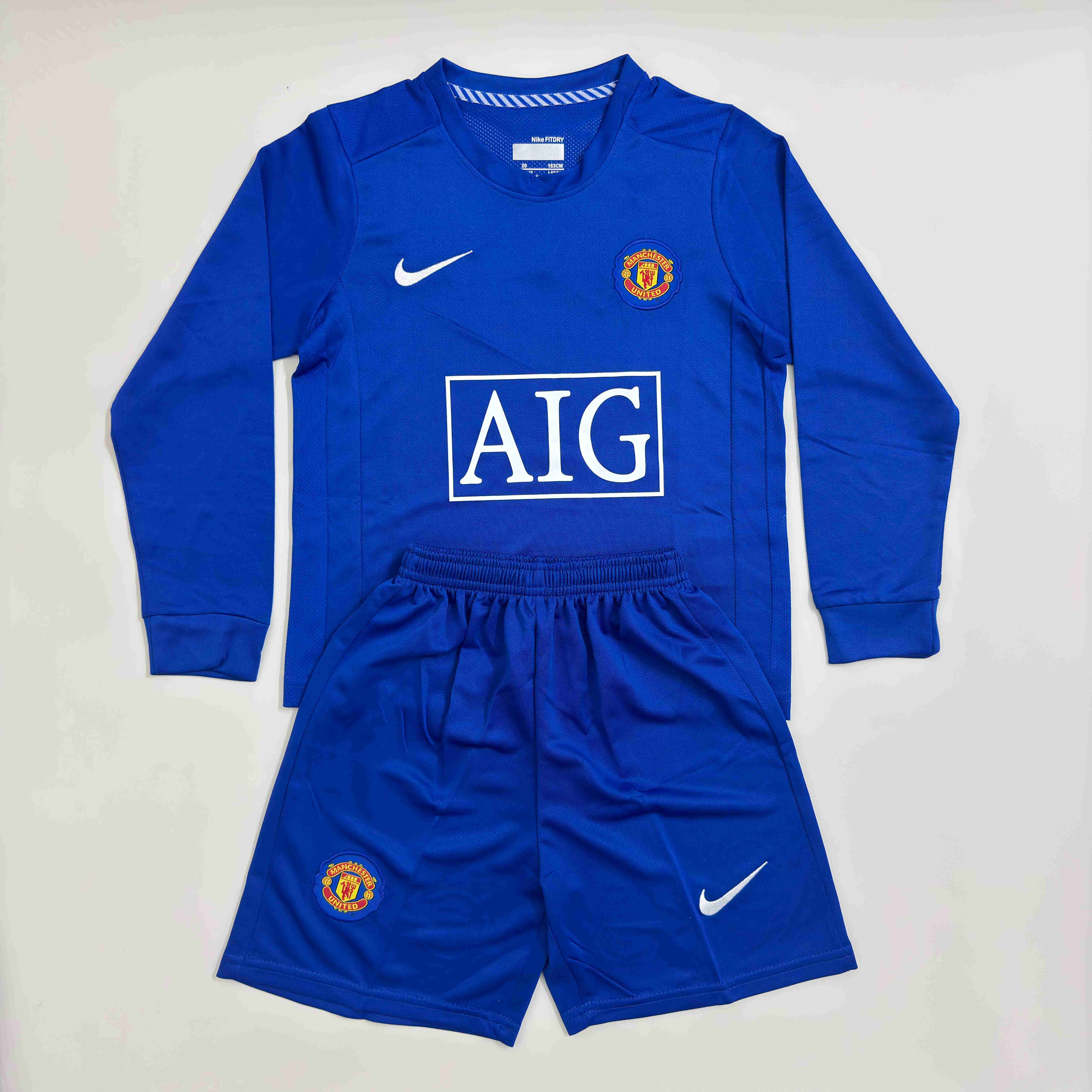2007/2008 Retro Long Sleeve Manchester United Third Away Football Shirt 1:1 Thai Quality Kids Size